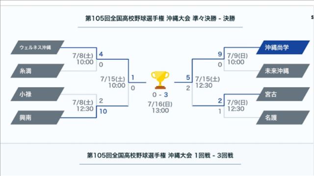 昨日、どこよりも早く 地元沖縄では夏の高校野球の代表校が決まりました  ウェルネスが勝ったらめちゃくちゃ面白いじゃん!とは思ったけど、さすがに沖縄尚学は強かった。 それぞれ地方大会では結構番狂わせも起きてるようで。 智弁和歌山も初戦敗退してるし、 高松商も消えたのよね、たしか…。 二松学舎もいないし… 今年は何かすごいことになりそうな予感…   からの、  オールスター前、最後の試合です。 ホームで負け越しが決まってる不甲斐ない推し球団ですが、せめて最後は取ってほしいところ。 打線が元気ないよう…