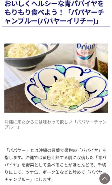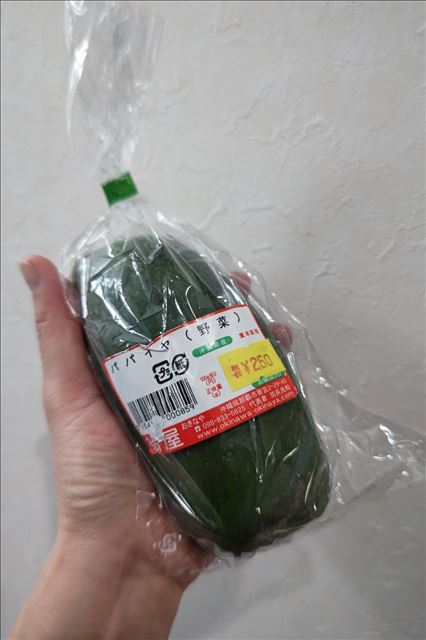 この前、沖縄のアンテナショップに行った時に 「あ!これも食べたいかもー!」 と、思って買ったもの。  青パパイヤ! こんなに小さいのに250円もした… これならアジアン食材屋さんで買ったほうが安かったかな… でももう買っちゃったし。  まだ調理してないんだけど、 パパヤーチャンプルーにする予定  ブログタイトルの「パパヤー」は日本語で「パパイヤ」のことだよ 沖縄の言葉では「パパヤー」になります。