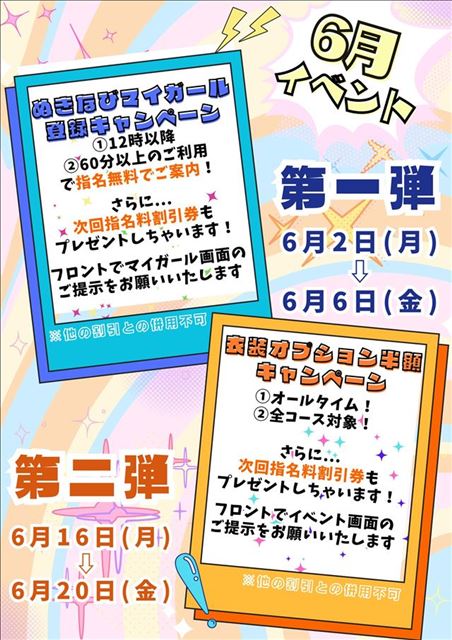 お店に着いたらBGMが高橋真梨子さんの桃色吐息でした。  わたしが小さい頃、 親戚の集まりがあったときに おじさんがこの歌をカラオケで歌ったんですが  大人になった今、 たくさんの子ども達がいた集まりでこの歌を歌ったメンタルすごいな、と改めて思います。 カラオケの映像もなんか着物?がはだけた女性の人出てたし…(笑)  懐かしい思い出?です。    このあと、 1番早くて 12時45分〜 ご案内可能です。  取り急ぎお知らせ    本日イベント最終日!! 衣装オプションをつけて指名料無料券もらっちゃおう!!