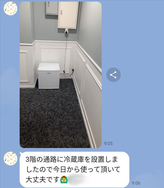 冷蔵庫が来たんだってYO!!  でも設置場所が草。 今日実際に見たけどシュールで最高です。  6階に大きい冷蔵庫あるけど、3階から毎回6階まで上がるの大変だったもんね…。 みんなで仲良くたくさん冷やしていこう  スイカのスタッフさん、中の人(?)ありがとうございます。 言ってみるもんやで!!    てなもんで。 休暇明けのつばさ、無事に終了いたしました 金曜日とつばさは相性が悪かったりするんですが、 休暇明けということもあって 本指名さまや初めましてさま、たくさんのご縁に恵まれた嬉しい1日でした  ありがとうございました  また皆さまと再会出来たら良いなぁ   個別のおれいブログはまた後ほどねー