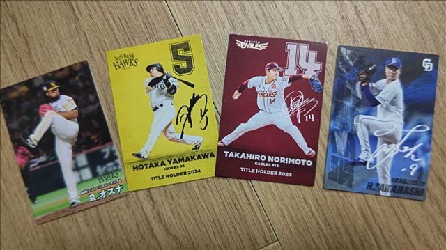 以前撮ったやつがあるので 久しぶりに載せます、開封の儀 (まだ髪が長いしハネてる) いくぜ! 開封の儀! \ドンッ!!/  左から ソフバンのオスナ 同じくソフバンの山川穂高(サインカード) 楽天の則本昂大(サインカード) 中日の高橋宏斗(タイトルカード?)  でした  からの!!  昨日のブログにも書いてたけどマジックはね…消えるような気がしてました(笑) でもこの時期はついたり消えたりするものだと思うので全然気にしてません  それよりさっきの満塁、危なかったぁ