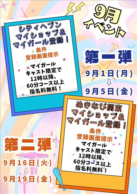 さらに追加のご予約ありがとうございます オキニトークでの「今日行きます!」のメッセージを見る前からご予約のお名前だけですぐどなたかわかりましたよ〜 気をつけてお越しくださいませ   【本日の空き時間】 今〜13時45分  残りこの1枠のみです。  取り急ぎお知らせです   先ほどもお知らせしましたが… ぬきなび関東でスイカをマイショップ登録、 お気に入り&気になる女の子をマイガール登録するとその女の子の指名料が無料になります 12時以降、60分以上のコースから適用されます。 受付で登録したことがわかる画面の提示をお願いします  ほなな。