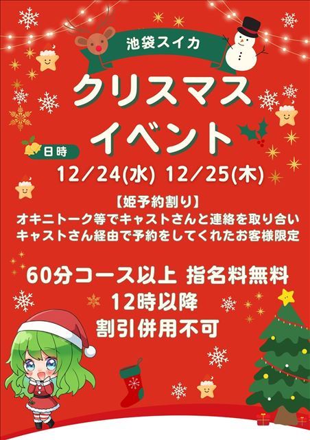 ただいまのんびりと待機中です  つばさの身は19時15分まで空いてる…と思ったのですが、受付終了になってる!? どうやらラスト枠のお兄様が早めに来れるようになったからだそうで。  わーい!おかげで早く帰れますーー ありがとう、Mさん   今日のわたしは受付終了ですので明日のお知らせを。  明日のつばさは 9時〜17時まで。 いつもの早番つばさです   事前予約に加えて前日予約もいただきましたので 明日の空き時間は 10時30分〜15時15分 に、なっています。  スタートとラスト枠以外はガツン!と空いてますのでお時間の合うかたからのお誘いをお待ちしております    クリスマスイブとクリスマスは女の子に直接予約を入れて指名料無料にしちゃおう〜  またあとでね
