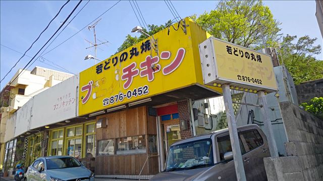 沖縄ブログというか、浦添ブログになってます。  ケン〇ンショー観てる人は知ってるかな? テレビで有名になって最近はオシャレなお店を建てました、ブエノチキン。  店内オシャレですが 店から漏れ出るニンニク臭がものすごい。  臭いがもう致死量。  鶏の丸焼きwith致死量のニンニク。 そんな食べ物です。   ここは新しい店ですが 近くに旧店舗があります。  小さい頃、この近くの保育園に通ってたので 行き帰りに店の外からぐるぐる回って焼ける丸鶏を毎日見てました。   旧店舗。  看板取れても気にしないこの緩さ。  今はセントラルキッチン?化してるのか ここも致死量のニンニク臭がします。   ニンニクにまみれたい、 ニンニクに抱かれて眠りたい。  そんなあなたに。