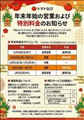 年末年始の期間中、誠に勝手ながら以下の日程において「年末年始特別料金」でのご案内とさせていただきます。
