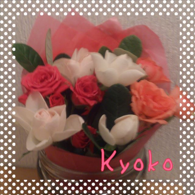 お仕事 お疲れ様   昨日 いただいたお花です。  なかなか 水に挿してやれなかったので 一旦は 元気をなくしてた ミニバラちゃん達も 思いきって丈を短く詰めて いけ直したら 蕾を開き始める程 復活しました   小さなピンクのお花を選んでくれて ありがと(*´∀`*)