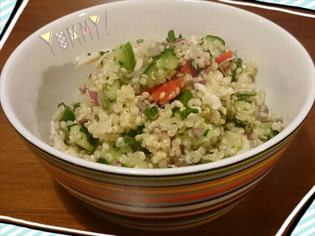 こんにちは。本日の写メは キヌアと言う植物を使ったサラダ。ちなみにわたくしの手作りじゃなく、コストコに売ってる出来合いの惣菜です。キヌアは ダイエットフードとして最近人気が出てきてる食材だそうですよ。そうは言っても、大きなパック入りの総重量1キロ超をひとりで食べきっちゃったので痩せる効果は さらさら期待しておりません。未知の食材への好奇心と単なる食欲旺盛っぷりが出ちまっただけw大好きなiittalaのシリアルボウルにとっても映えるカラフルサラダ。何杯も何杯も バクバクいけました!ブヒッ