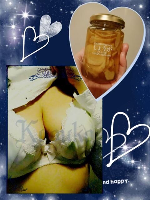 今日もご来店,ご指名ありがとうございました。Yさま、ことよろ!今年もたくさん会えるといいな。もしかして風邪の前兆とかかねー?週末は ゆっくり休んでくださいね。2度目のご縁のおとうさん、見かけによらず優しくてww、たしか前もとても優しかったので覚えてましたよ。またお会い出来るのを楽しみにしてます。今日の写真は、母から貰った しょうがの蜂蜜漬け。とりあえず 味見も兼ねてお湯で割って 飲んでみたら、すんげぇー あったまるぅー(≧∇≦)紅茶に入れるのも美味しそうだし、煮豚とか作る時 入れてもいいお味にしてくれそうだわ♪(あんまり作らないけど。。)今夜は 母の愛と しょうがパワーでお風呂入る前なのに もうぽっかぽかです(^^)