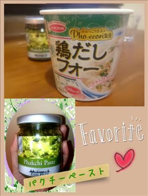 こんにちは。お仕事お疲れさまです。第三次パクチーブームが来てます、私の中だけだと思うけど( ‘-^ )-☆最近手にいれた パクチーペーストをとにかく食べてみたかったので、今日のお昼は カップのフォーにしました。鶏のダシがすっごく利いたスープに大さじ2杯程 このペーストを入れました。見た目が 深緑色に変わります。スープまで全ていただきました。やばい、病みつきです(≧∇≦)生春巻きに合うのはもちろん、鶏胸肉のフリッターにつけても絶対 美味しいと思う!ほかにもいろいろ使いみち考えるの楽しみ~(^^)