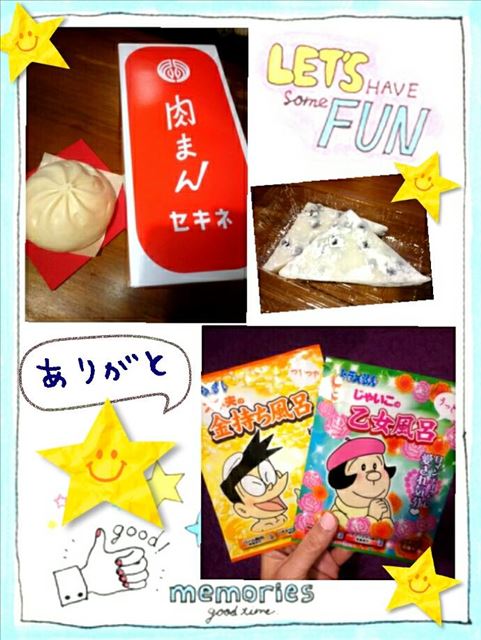 こんばんは。今日は 私の休みを待ち構えてたかなさんと おデートしてきました。私の故郷の街で お茶&散策♪エキサイティングで熱い街なのに、またもや 渋い“純喫茶”にしけこむ ふたり。どこの街でも やること同じ。笑お気に入りの肉まん屋さんと団子屋さんをかなちゃんに紹介しがてら、しっかり おみやげGET~(O´ч`O)かなちゃんからもプレゼントをいただいてホクホクで帰って来ました(^ω^)かなちゃん、楽しい午後のひとときとかわゆい入浴剤、ありがとう(*´▽`人)ブルーなはずの休日をすっごく楽しく過ごせました!