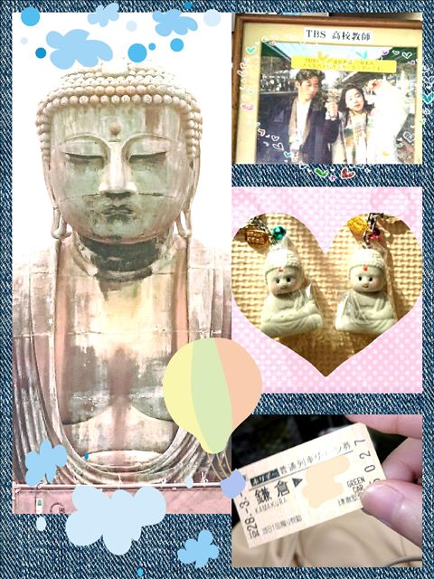 ようやく 目的地のあそこに行くことが できました(^^)『高校教師』の二宮 繭(高2)が買ってた大仏キーホルダーのお土産屋さんです。...鎌倉大仏がお目当てじゃなくてなんか すいません( ´ω`;)理由は 1コ前のblogをご参照ください。ドラマで見たのと まったく同じ物に巡り会えましたぁ(≧∇≦)23年経った この平成の時代に、携帯ストラップに替わるでもなくキーホルダーの姿のままだなんて感激!ちなみに 画像右上は、“お土産屋さんに飾ってあった、繭が先生にキーホルダーを渡して二人で見ているシーンの写真” の写真です。感慨一入、ブルーの鈴とピンクの鈴をひとつずつ 手に取りました。そこで初めて 気が付きました。買ってどうするの ? 、と。ちなみに 画像右中は、“ 高校教師 鎌倉 、で ググるとわりとすぐに出てくる画像” の写真です。歩き疲れたので、帰りは2階建てのグリーン車に乗りました。いつも見ている電車なのに、特別な車両に乗ると旅の気分が 盛り上がりますヾ(〃^∇^)