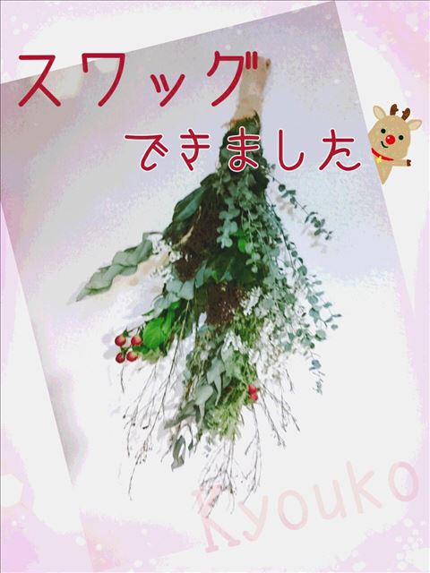 こんばんは。先日ご紹介した 今月の『おはな』でスワッグ を 作りました♪( ちなみに、スワッグってゆーのは. クリスマスリースのように. ドアや壁に 吊るして飾る物 、です )クリスマスまでは もつかな。。それ以降も 状態がよかったら、しばらく飾っておきたいなぁ(^^)自己流すぎて、世の中の“正解”とは違うのかもしれないけどww自分が手をかけた物ってひときわ 愛着わくんだよね~(*´艸`)