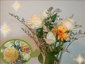 今月のお花 です。5月初旬、近所を歩くたびにずっと よそのお宅の立派なローズガーデンを羨望のまなざしで 眺めていたので、今月は バラを飾ろうと決めていました!淡い橙色のバラと 白いバラ、が 2本ずつ… なんだけど、写真撮ったら 全部が白っぽい(> <)なので、少しはマシに色がだせた写真もちいさく 追加しました。可愛い色のバラに出会えてうれしい(*´艸`)