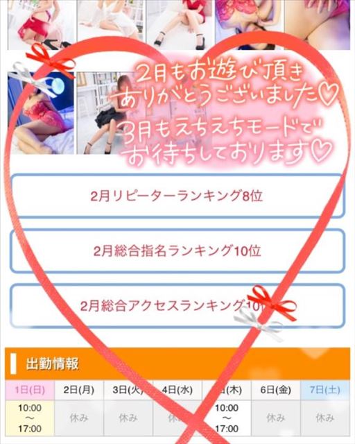 おはようございます。お疲れさまです。出勤しましたーーーたくさん空いてまーす。。今日も仲良くしてください2月 お会いできました皆さん、どうもありがとうございました。たくさんの本指名さまのおかげでランキングに入ることができました懐かしい仲良しさんもきてくれてうれしかったです!!(もうあんまりご無沙汰しないでね~笑)まだお会いしたことない方もぜひ一度遊びにいらしてください今月もがんばりますっどうぞよろしくお願いします。・:+°?女の子ページへ http://365diary.net/TU1xUlVoL3R0L3RvbWF0b25hYmkvMzkyMDA2Mzc-
