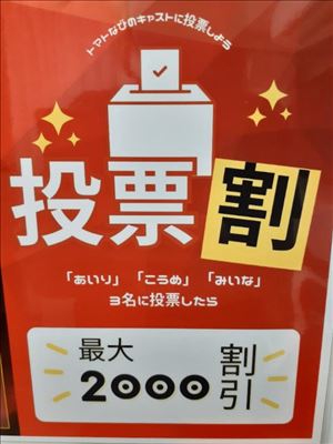 ミスヘブンの投票は今日までとなってますあいりさん、こうめさん、みいなさんに投票するとお得な割引がありますエントリーしていないキャストさん達も割引となりますよ投票は今日までですが、割引は12日まで使えますので御協力お願いいたします女の子ページへ http://365diary.net/OXViejgxL3R0L3RvbWF0b25hYmkvMzAxNjk3MTY-