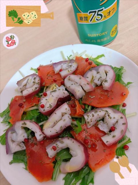 晩ごはんというか晩酌今日はカルパッチョを作ったよ~なんか急に海鮮と生野菜が食べたくて……ちょこっとオシャレにピンクペッパー散らしてみました明日のために夜更かしはせずに寝まーす女の子ページへ http://365diary.net/bkVpcVpkL3R0L3RvbWF0b25hYmkvNTcxODI1OTg-
