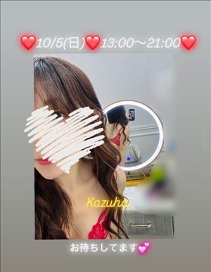 かずはです??♀??本日もお部屋にいます???10/5(日)??13:00~21:00??どの時間も空いてます??女の子人数とお部屋数の関係で、事前にご予約いただけると、ご案内スムーズ?そして、かずはの満面の笑みが見れます?(ほんとお買い物の休憩?、お仕事帰り?、飲み会前後?スッキリ?のお手伝いさせてください??週末えちえちゃーじ????一緒にしましょ 待ってます??かずは 女の子ページへ http://365diary.net/NHhjM1pQL3R0L3RvbWF0b25hYmkvNTcxODQ1MjY-