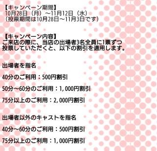 ミスヘブン総選挙皆さん投票はしましたか?投票期間が11/3(月)までになっていますあいりさんこうめさんみいなさん3人に投票お願いします投票してもらうと割引もされます!3日までに投票すれば11/12(水)まで割引が使えますぜひ投票お願いします(*^^*)皆様に応援してほしいな…女の子ページへ http://365diary.net/RnZ1cERkL3R0L3RvbWF0b25hYmkvNjE3MzEyMDM-