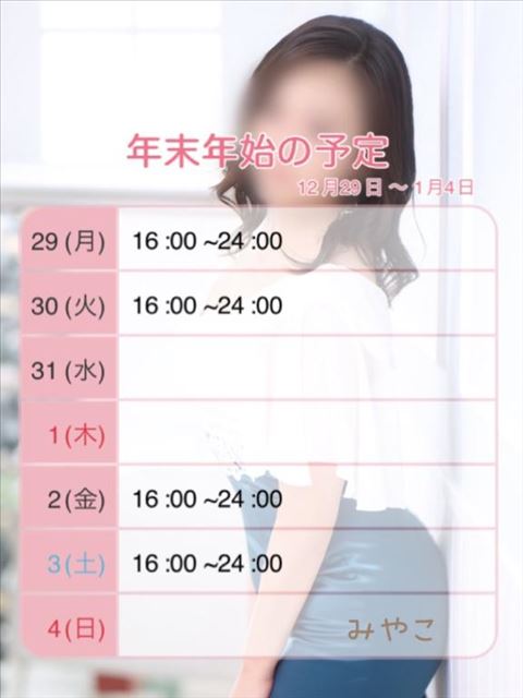 ?? ??はぁぁぁ馬が走るともう すぐに終わっちゃうよー 2025..(/ω\*)オワリヨケレバスベテヨシ年末年始の予定です?納 でも ?始 でも愛に来てくれたら 喜びます??↓ ご確認ください??12/29~1/4↓ お楽しみ?1/2~1/4ご予約 お誘い心より お待ちしております??*.゚お早めのご予約が オススメ??みやこ?女の子ページへ http://365diary.net/S1ZMV1k3L3R0L3RvbWF0b25hYmkvNjI3NzQ2Njc-