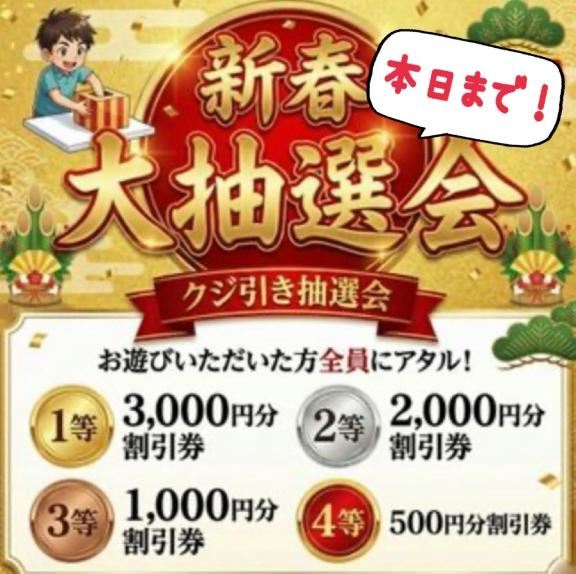 大抽選会1/4(日) 本日まで!?明日1/5(月)から通常営業に 戻ります( ??? )本日 おやすみを頂いて次回また明日16:00~です?お正月休み最終日の方も多いでしょうか|´-`)ステキな1日をお過ごしください??????みやこ女の子ページへ http://365diary.net/MU0yUXBkL3R0L3RvbWF0b25hYmkvNjI3NzQ2Njc-