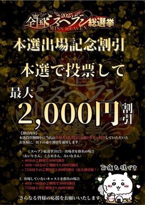 どうやらどうやらミスヘブンの総選挙が盛り上がっているらしい トマトなびのキャストさんも3名本戦に出場とのことで 皆様の清き一票が必要です  投票してくださった方にはちょっと良いことも起きるらしい シティヘブンの投票券をお持ちのアナタ びしびしっと票を入れての女の子の応援をよろしくお願いいたします    女の子ページへ http://365diary.net/NnIxbllPL3R0L3RvbWF0b25hYmkvMTc1MDA5MjE-