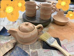そしてそして今夜は 陶芸活動の夜でございました     素焼きの窯出し   このように無事に焼き上がりまして   紙ヤスリで削って削って柄をハッキリ出したり、 表面をなめらかにする作業で終わりました   指が痛い   削って、刷毛ではいてみたらば 意外と良い感じ なのではないでしょうか   この後撥水剤を塗って 釉薬を塗ってから本焼き     急須の蓋 空気穴無いけど   どうにか開けられるかな…           女の子ページへ http://365diary.net/RE9DMmwyL3R0L3RvbWF0b25hYmkvMTc1MDA5MjE-