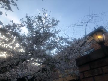 ご近所の大きな桜の木🌸   もう3分の1葉桜になっていました。     今日は風が強かったけど、温かいいいお天気でしたね。         では、またあした🍅        トマト🍅なび もも